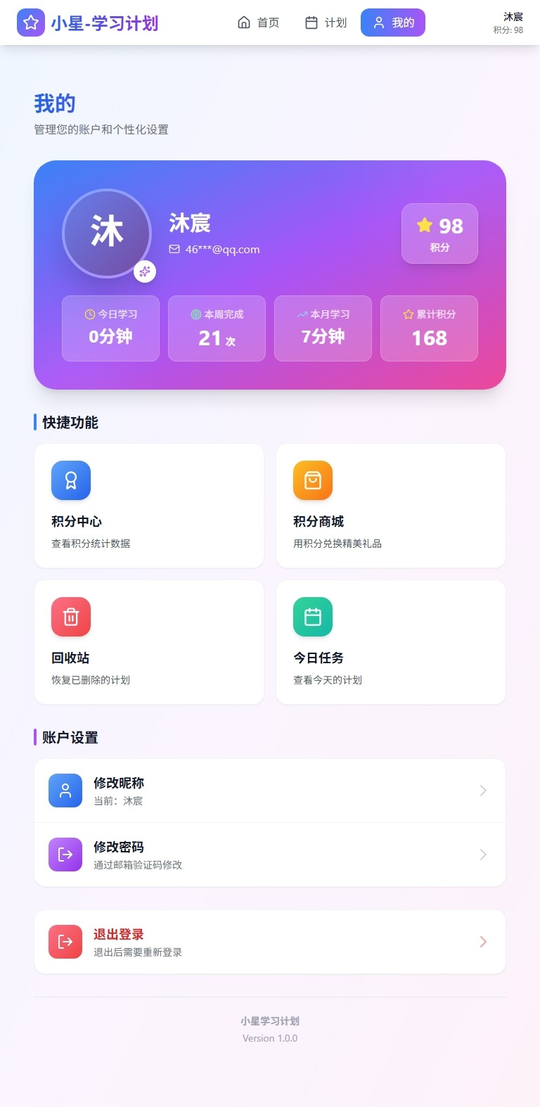 每次完成任务,App会弹出超酷的庆祝动画——五彩纸屑从天而降,积分奖励"唰"地跳出来!